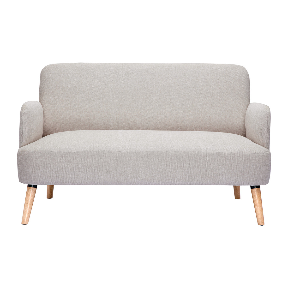 Canapé en tissu beige et bois clair livré prêt à monter.