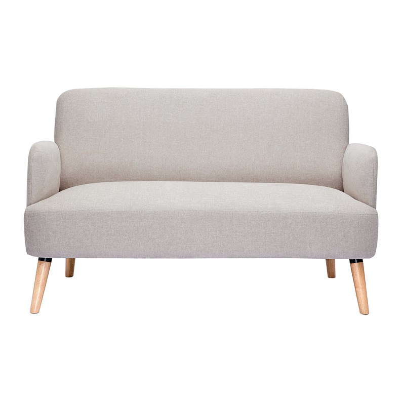 Canapé 2 places en tissu effet velours texturé beige et bois clair isko