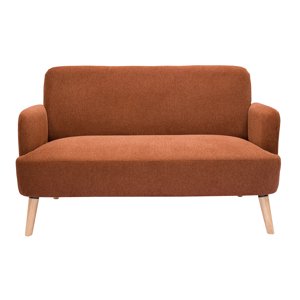 Canapé 2 places en tissu effet velours texturé terre brûlée et bois clair isko