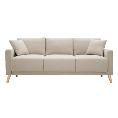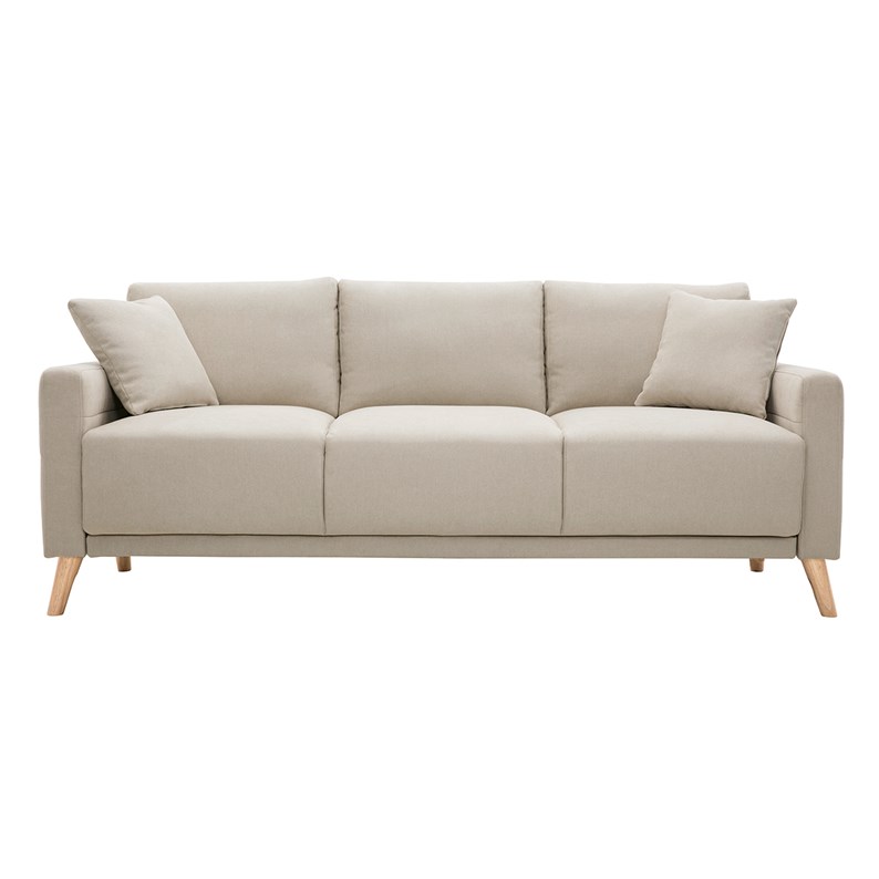 Canapé 3 places en tissu beige et bois clair munik