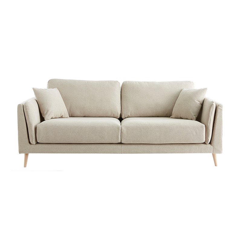 Canapé 3 places en tissu beige naturel et bois clair vogue