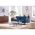 Canapé 3 places en tissu bleu foncé et bois foncé ektor