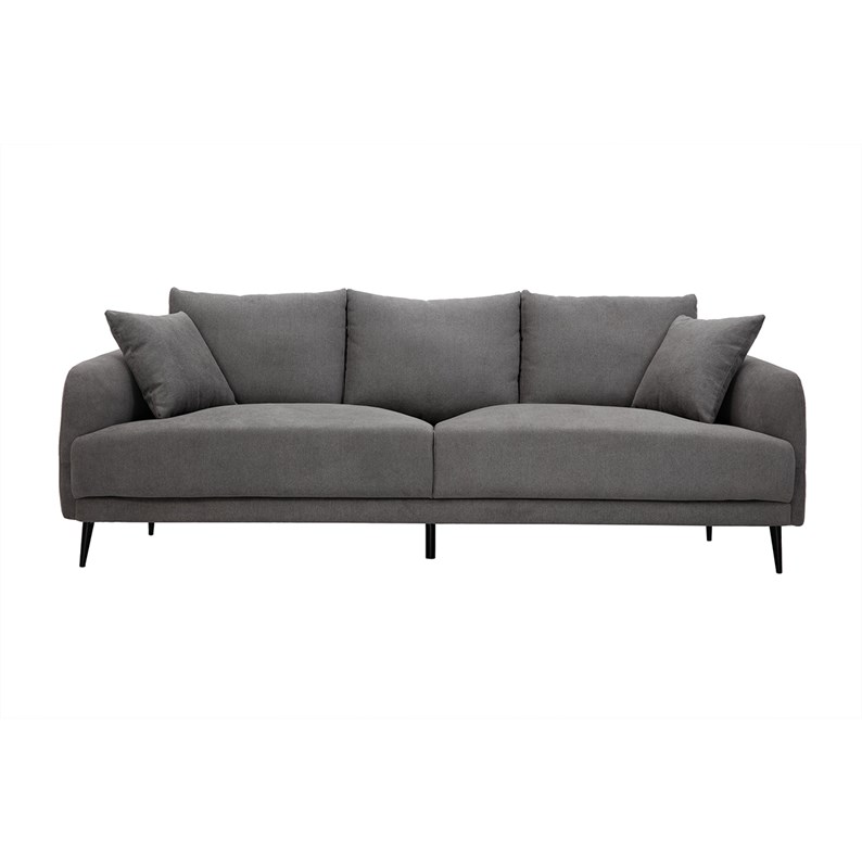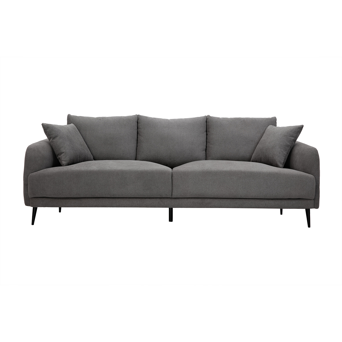 Le canapé 3 places JERRY promet de jolis moments de détente en famille. De l'assise ample généreusement garnie aux accoudoirs rebondis en passant par les coussins de dossier ultra moelleux , tout a été pensé pour vous offrir un maximum de confort. Vous apprécierez également la douceur du revêtement effet velours gris (tissu 100% polyester). Une enveloppe au toucher velouté qui habille avec élégance les épais coussins d'assise (densité 35 kg/m³). Les quatre jolis pieds fuselés en métal noir apportent beaucoup de légèreté à l'ensemble.