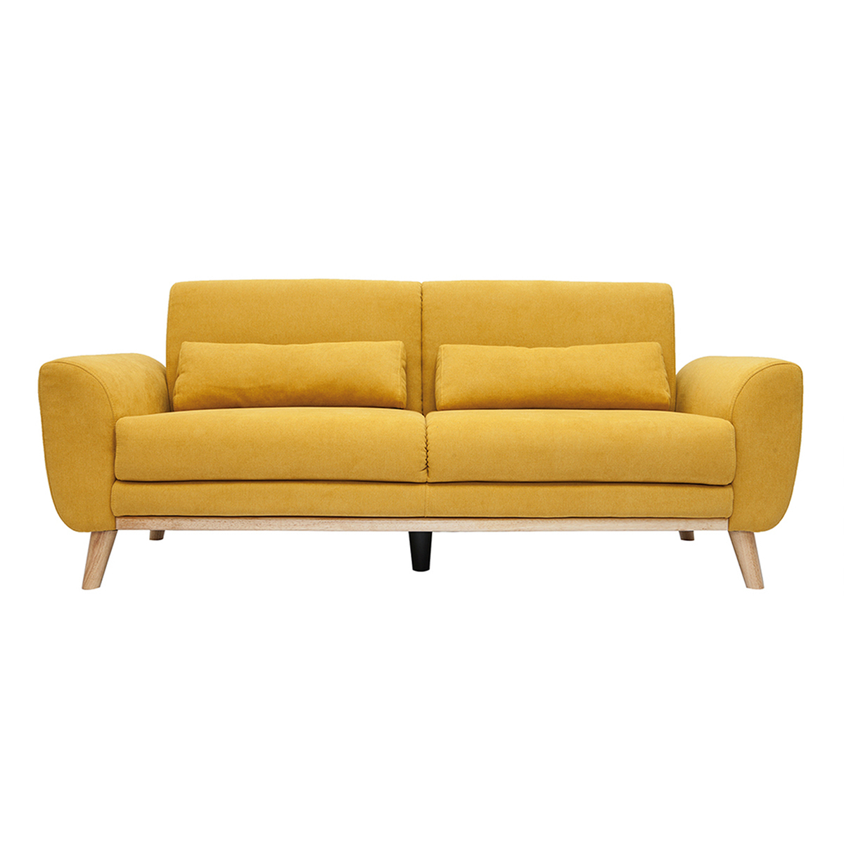 Canapé 3 places en tissu effet velours jaune moutarde et bois clair ektor