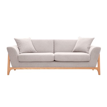Ce canapé 3 places (L186 cm) affiche une esthétique scandinave résolument tendance. Il se distingue par sa structure en bois aérienne et épurée qui épouse parfaitement l'assise. Ce cadre en frêne massif souligne la beauté de ses lignes pures et se marie parfaitement au revêtement en tissu effet velours texturé beige (95% polyester).