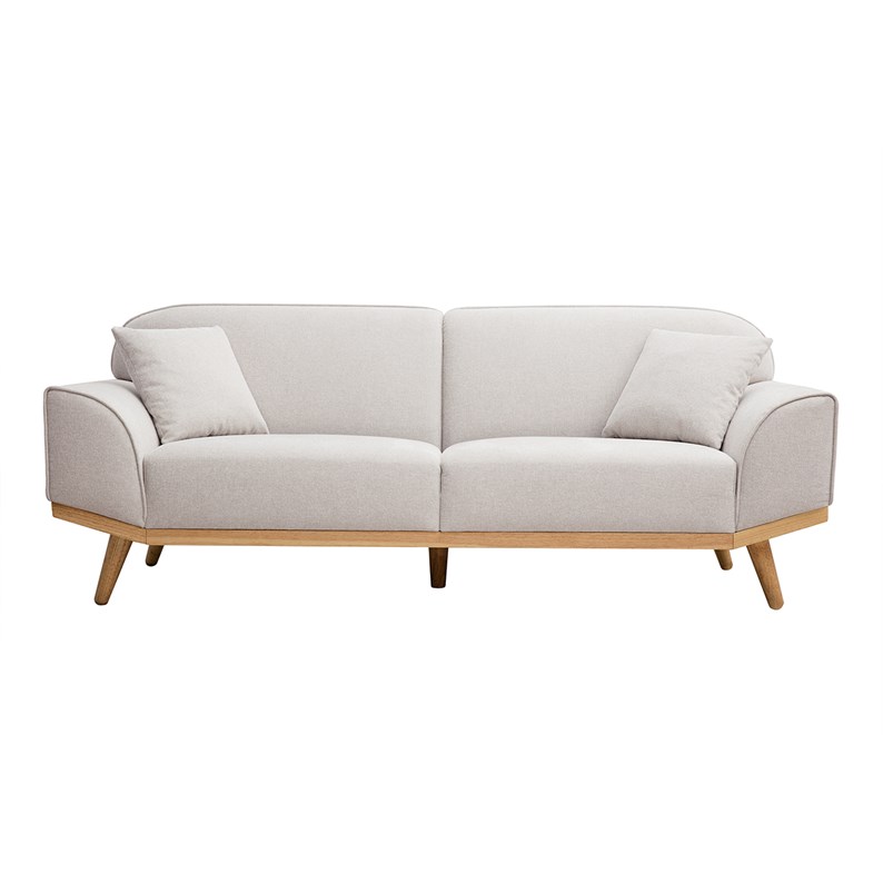 Suivre les tendances ? Miser sur l'intemporalité ? Faire preuve d'originalité ? Le canapé FREEMA fait tourner les têtes ! Un tantinet scandinave, un brin rétro et résolument moderne, ce canapé 3 places en tissu beige et bois clair chahute les codes.