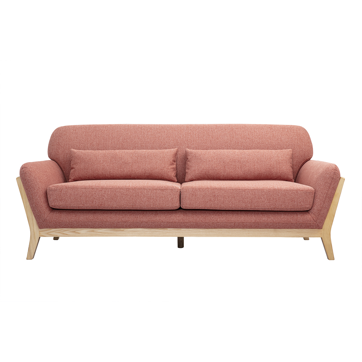 Canapé 3 places en tissu effet velours texturé terracotta et bois clair yoko