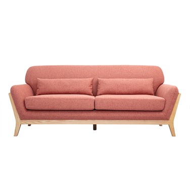 YOKO, à la fois design et original, se distingue par une structure en bois clair (frêne massif) prolongée jusqu'au piètement. Avec son revêtement en tissu effet velours texturé et ses beaux volumes, ce grand canapé terracotta (dimensions totales L189 x P85 x H79 cm) charmera ses hôtes au premier regard !