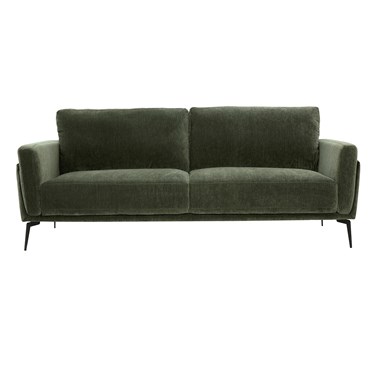 Le canapé design MOSCO s'habille de vert grâce à un joli tissu effet velours vert kaki (100% polyester). Cette couleur lumineuse et naturellement chaleureuse s'accorde facilement avec tous les styles de décoration. Ses quatre pieds hauts en métal noir (H17 cm) viennent ajouter à l'ensemble une touche moderne et chic.
