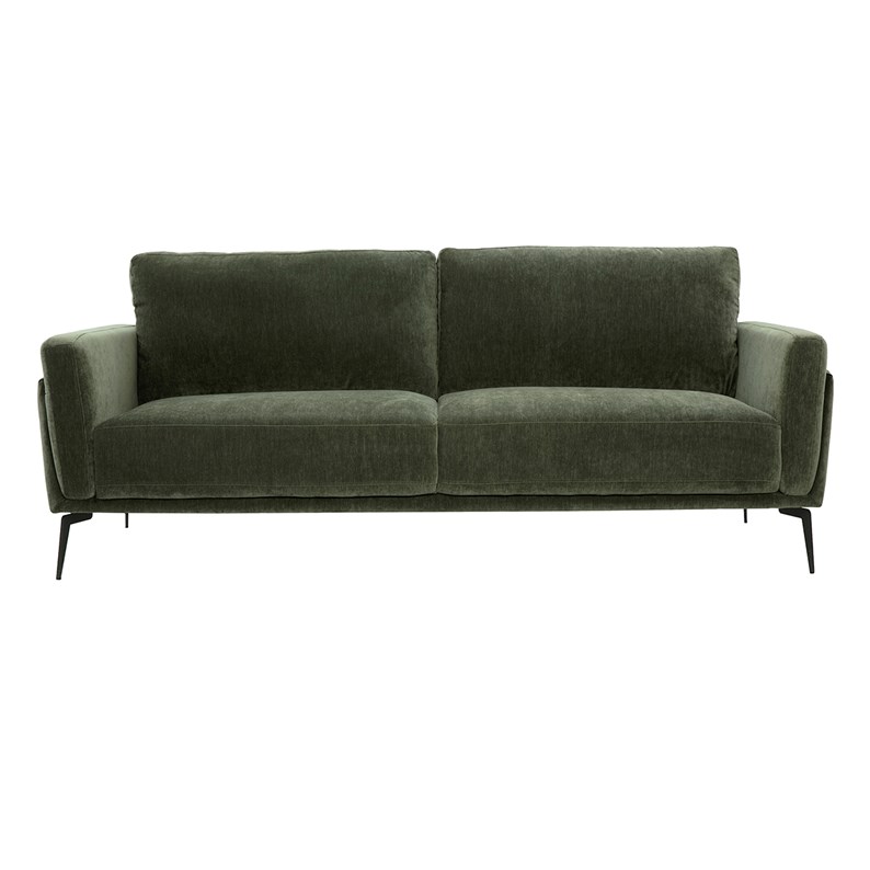Canapé 3 places en tissu effet velours vert kaki et métal noir mosco