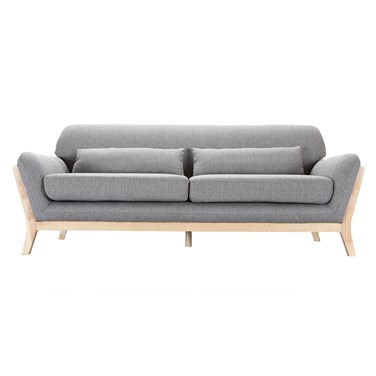 Canapé 3 places en tissu gris et bois clair YOKO livré prêt à assembler. Montage simple, seul le dossier est à fixer. Le colis étant volumineux, nous vous conseillons de vérifier que portes et escaliers permettent son passage.