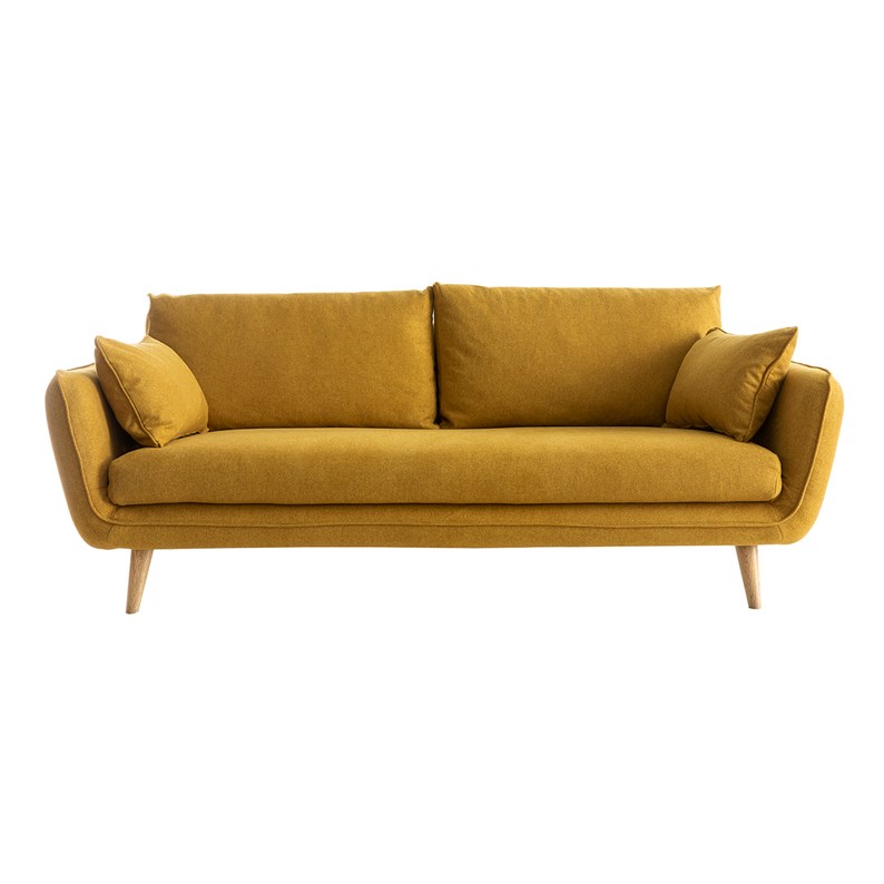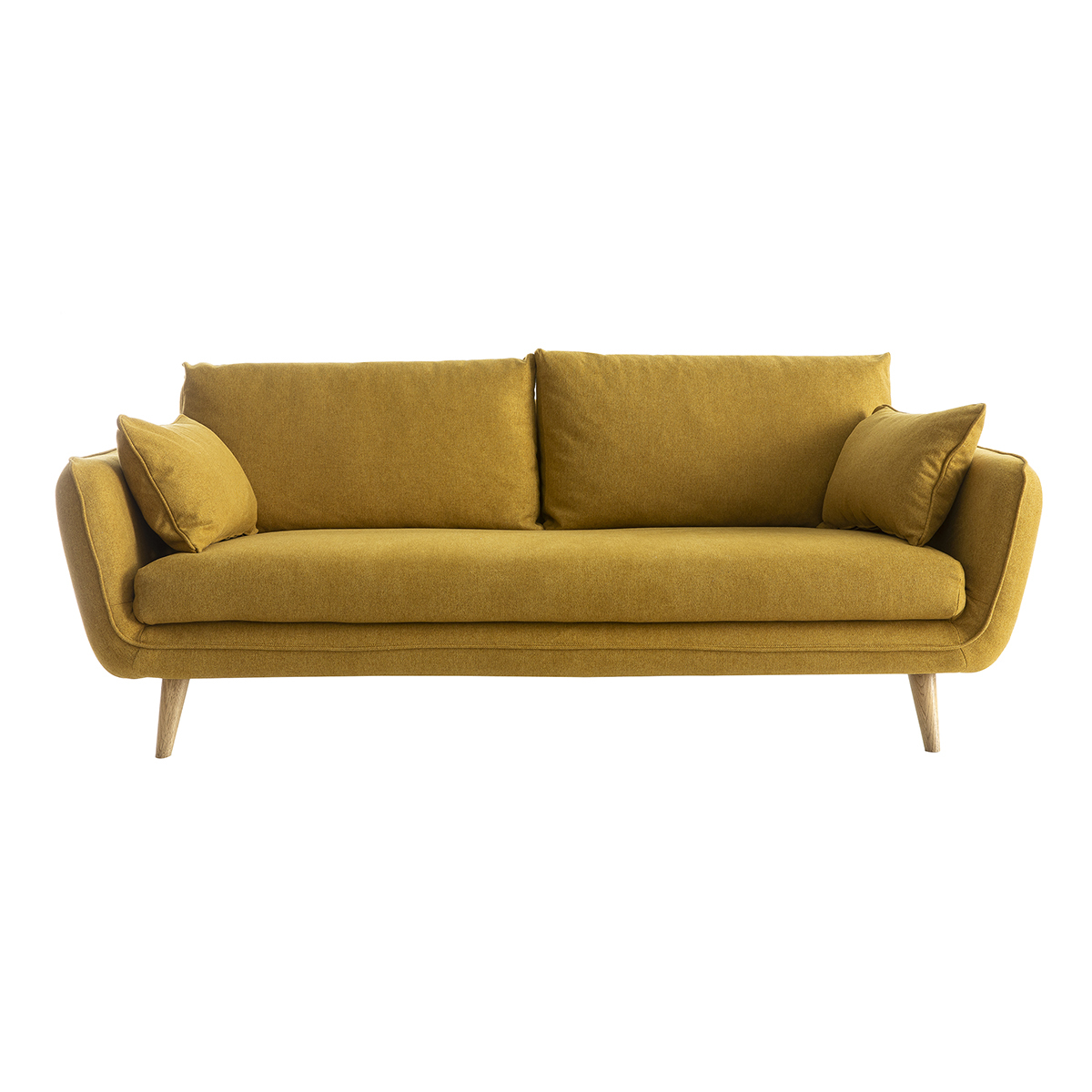 Canapé 3 places en tissu jaune cumin et bois clair creep