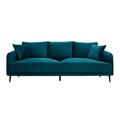 Canapé 3 places en tissu velours bleu pétrole et métal noir jerry