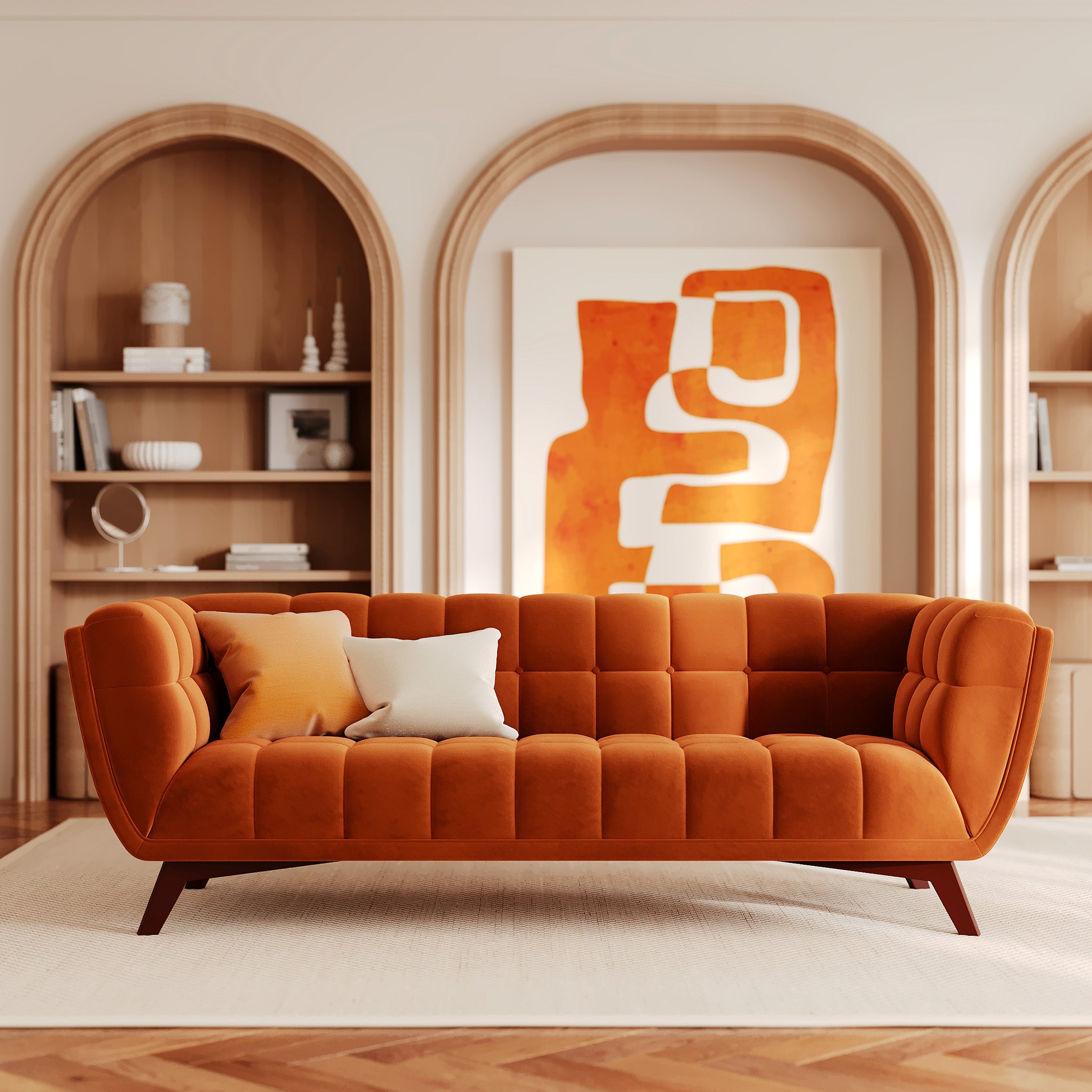 Canapé 3 places en velours orange curcuma - mona