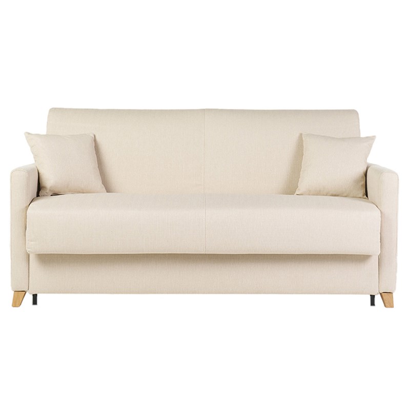 Canapé convertible 3 places en tissu beige et bois clair skandy