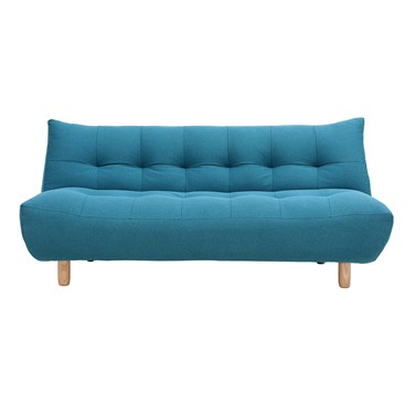 Canapé convertible 3 places en tissu bleu canard et bois clair yumi