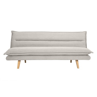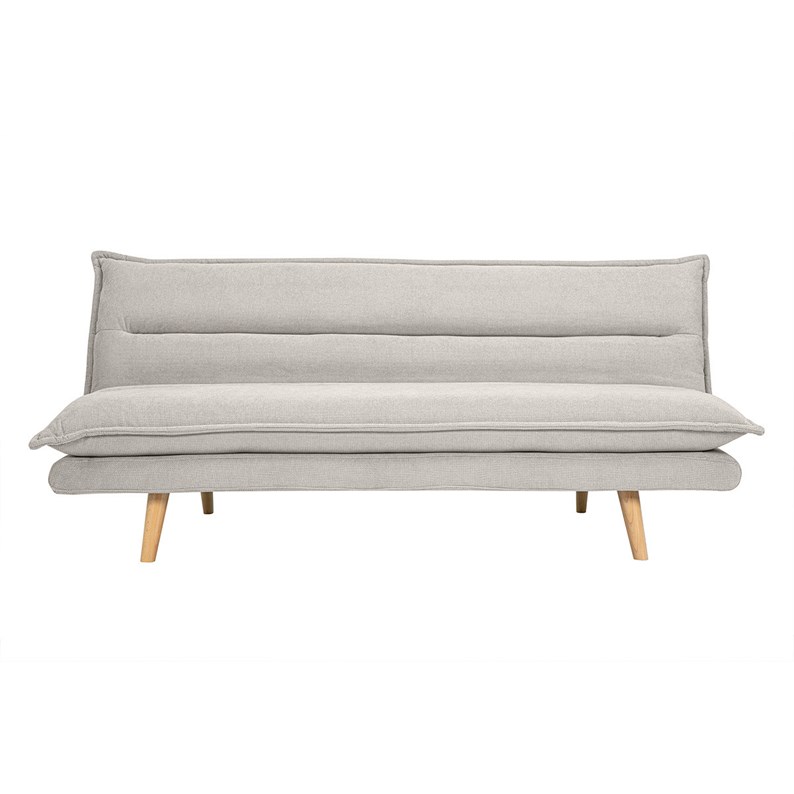Canapé convertible 3 places en tissu chenille beige et bois clair bingo