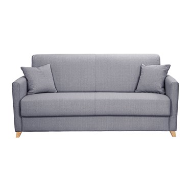 Canapé convertible 3 places en tissu gris clair et bois clair skandy