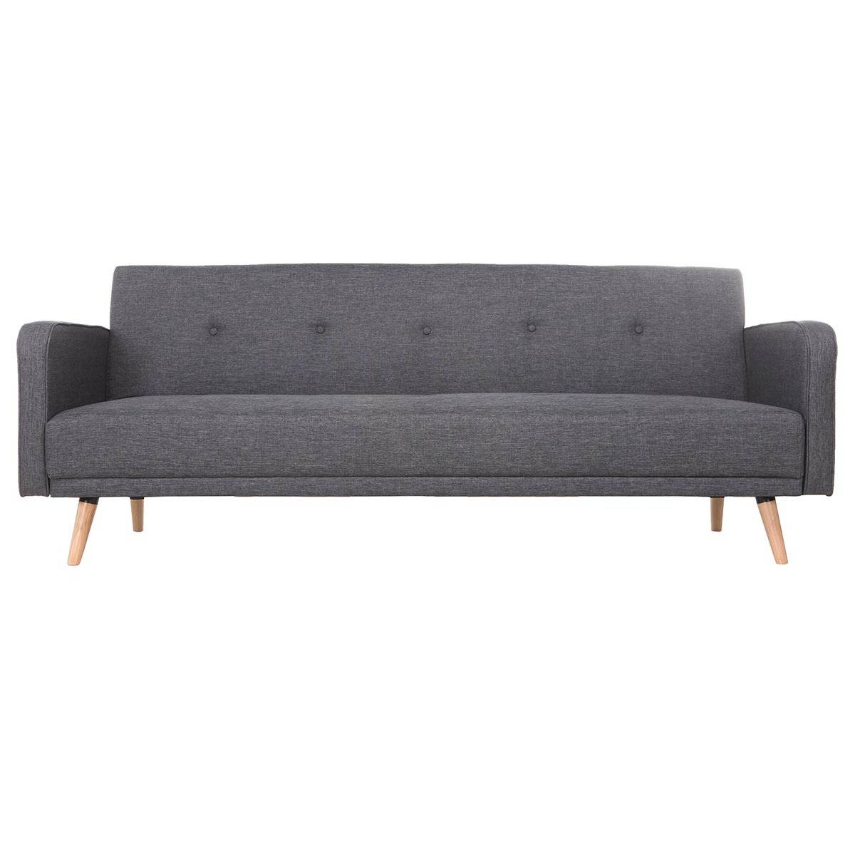 Avec son revêtement en tissu (100% polyester), sa belle couleur gris anthracite , son piétement en bois clair et sa forme épurée, ce canapé convertible 3 places forme une belle assise au design indémodable.