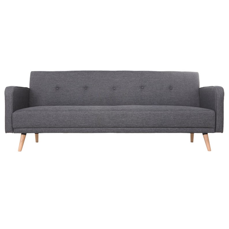 Canapé convertible 3 places en tissu gris foncé et bois clair ulla