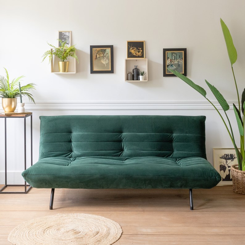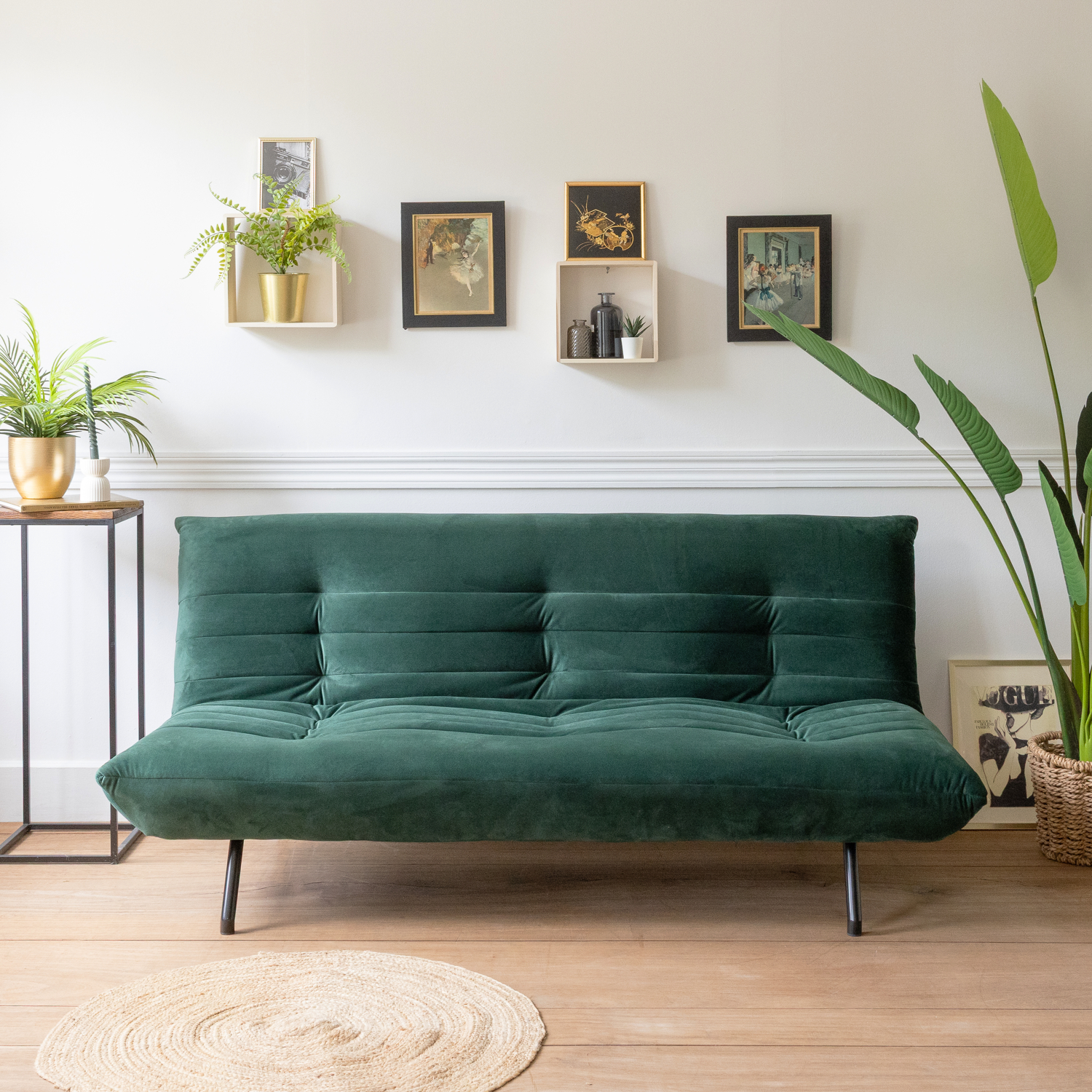 La matière capte la lumière et apporte une touche de douceur au salon. Son toucher est doux, son assise confortable. La structure en bois de pin offre un bon maintien et une bonne stabilité. Le mécanisme de conversion est discret et facile à manipuler. En quelques secondes, le canapé devient un lit d'appoint pratique. Vous pouvez l'installer dans un intérieur contemporain, mais il s'adapte aussi à des ambiances plus classiques. C'est le moment de gagner de la place sans faire de compromis sur le style.