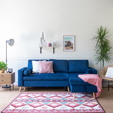 Canapé d'angle convertible james 3 places en velours bleu