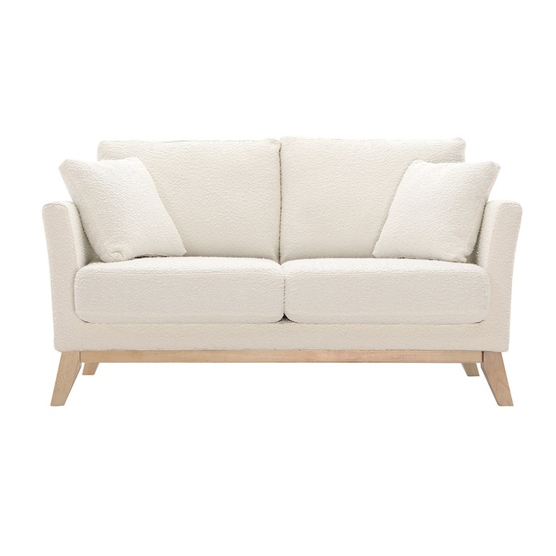 Canapé déhoussable 2 places en tissu effet laine bouclée blanc cassé oslo