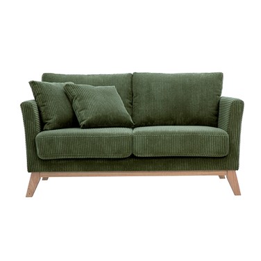 Canapé déhoussable 2 places en tissu velours côtelé vert kaki et bois clair oslo