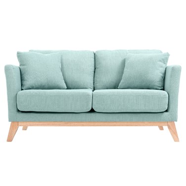 Canapé déhoussable 2 places en tissu vert lagon et bois clair oslo