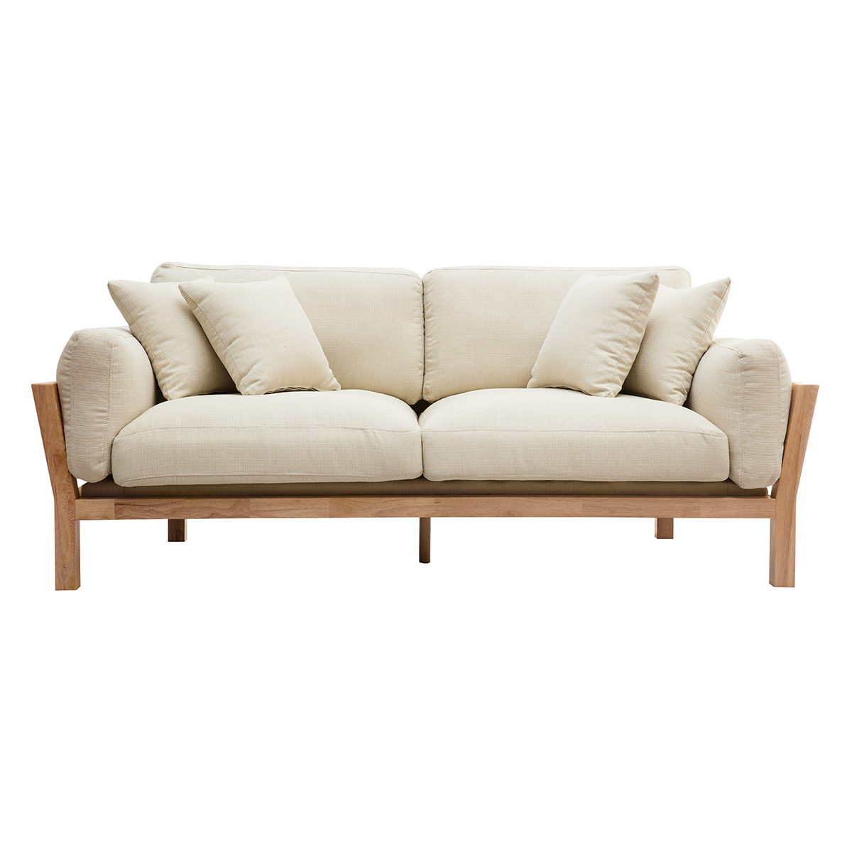 Canapé déhoussable 3 places en tissu blanc crème et bois clair kyo