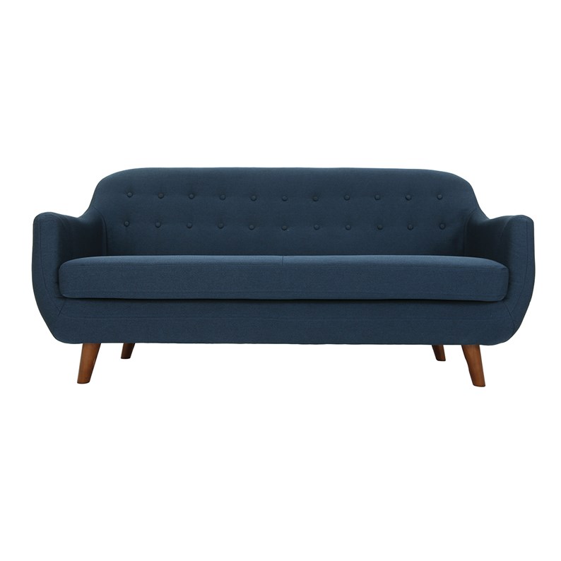 Canapé déhoussable 3 places en tissu bleu foncé et bois foncé ynok