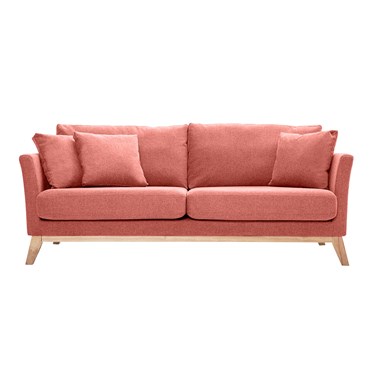 Canapé scandinave déhoussable 3 places en tissu effet velours texturé terracotta et bois clair OSLO livré prêt à assembler. Montage simple, seuls les pieds sont à fixer.