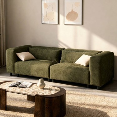 Canapé en tissu au design sobre et contemporain. Son assise profonde et ses coussins confortables en font un choix idéal pour créer un salon lumineux, élégant et agréable à vivre au quotidien.