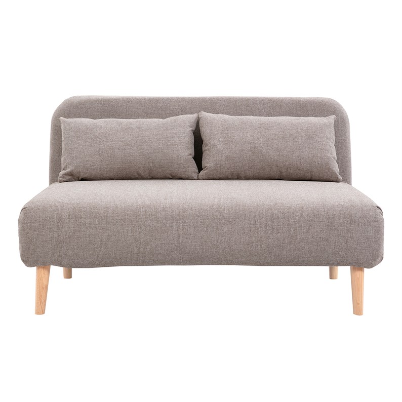 Chauffeuse 2 places convertible en tissu taupe et bois clair amiko