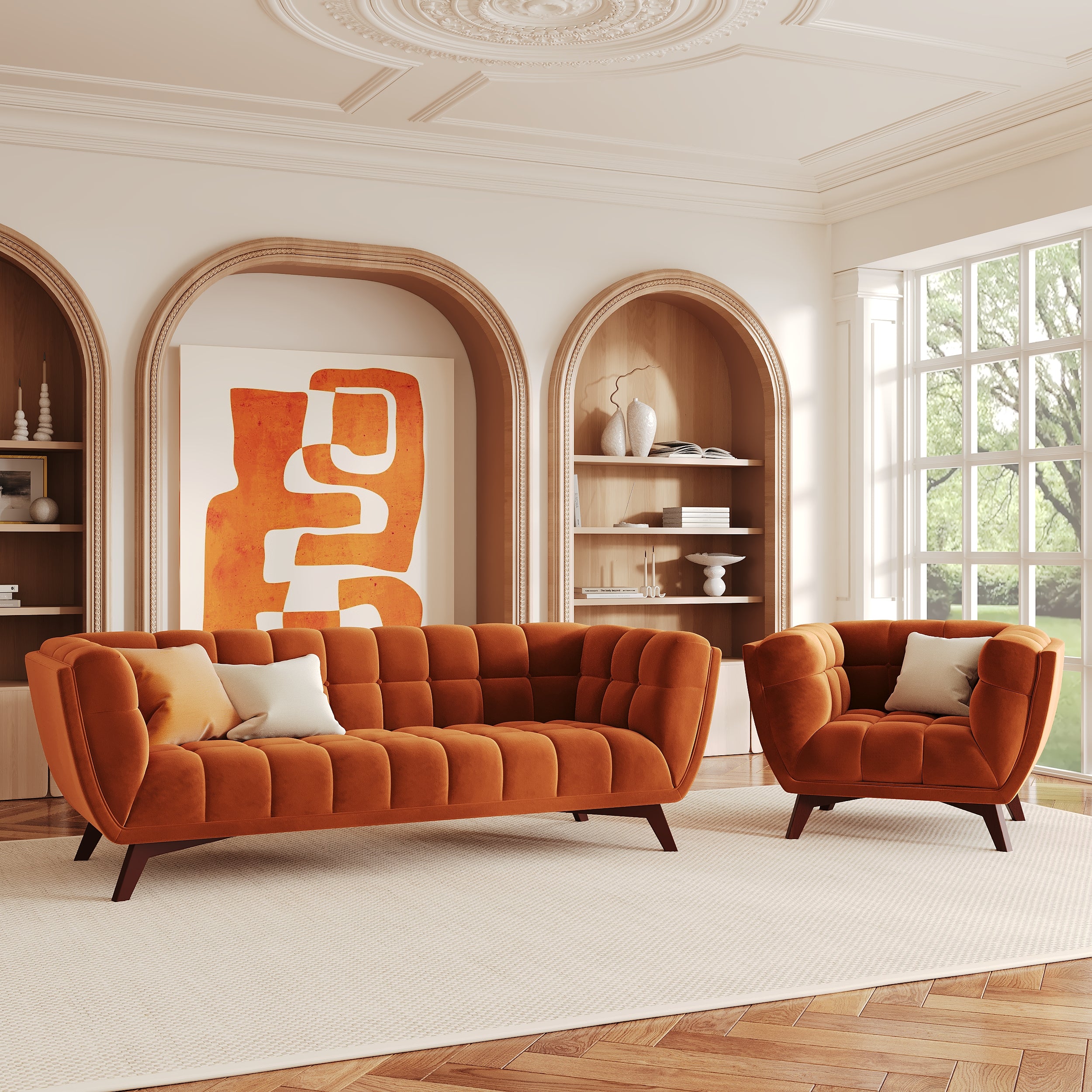 Ensemble canapé et fauteuil en velours orange 4 places - mona