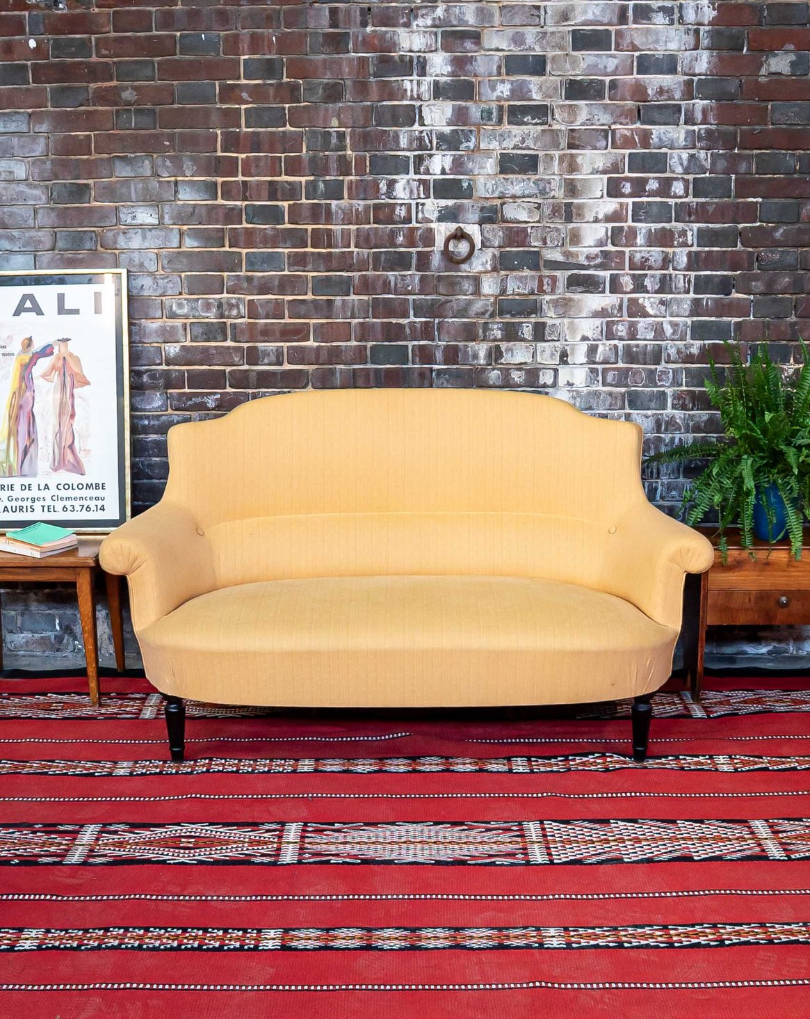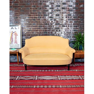 Découvrez ce magnifique canapé crapaud 2 places Napoléon III, habillé d'un élégant tissu jacquard ton sur ton jaune. Ses pieds noirs lui confèrent une allure contemporaine tout en préservant le charme d'époque. Bien que le tissu présente quelques traces d'usure, cela atteste de son authenticité et de son histoire. Les deux boutons ajoutent une touche de sophistication, faisant de ce canapé un choix idéal pour une décoration raffinée.