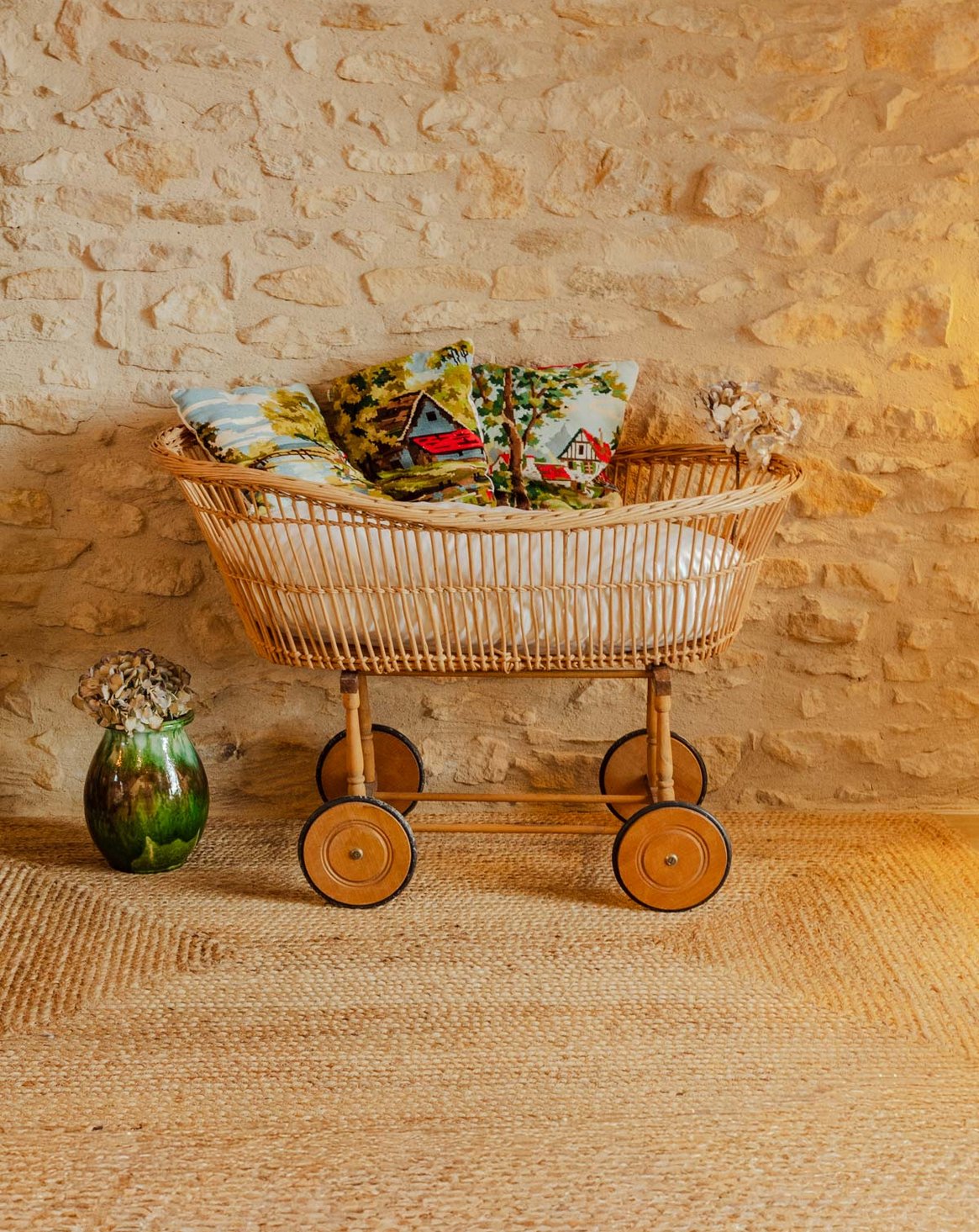 Découvrez ce berceau vintage en rotin, soutenu par une structure en bois qui allie élégance naturelle et robustesse. Une pièce emblématique qui allie élégance et douceur. Le système de loquet plat pivotant garantit un assemblage simple, tandis que la matière chaleureuse du rotin crée une atmosphère apaisante et authentique. Ne répond pas aux normes actuelles de sécurité (EN 716) et ne doit pas être utilisé pour le couchage d’un bébé