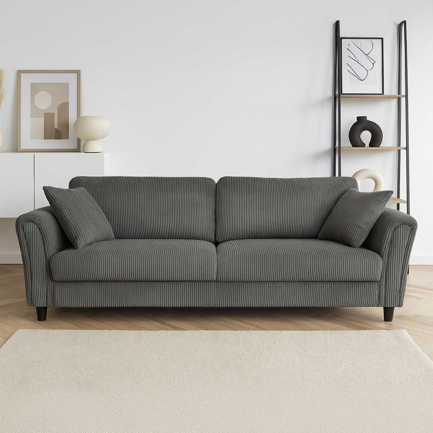 Lucerne canapé 4 places en velours côtelé gris foncé