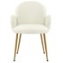 Elégance et souci du détail, le fauteuil de table ALICE ne lésine pas sur le style et s'impose comme un incourtournable !Une ligne moderne très contemporaine, chic et dans l'air du temps.Assise confortable rembourrée ( 6 cm de mousse HR 26kg/m3) toute en courbes et douceur revêtu du tissu Cozy.Muni de 4 pieds assymétriques en métal imitation chêne, obliques sur l'arrière pour renforcer la ligne très affirmée de cette chaise.Aucune hésitation, craquez pour ce fauteuil qui saura se faire remarquer dans votre intérieur et ne manquera pas d'attirer les regards ! Version présentée en tissu Cozy Ecru.