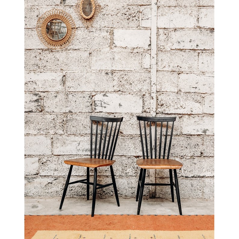 Découvrez cette chaise au style Tapiovaara, parfaite alliance entre élégance nordique et sobriété. Son dossier graphique à 7 barres apporte légèreté et caractère à l’ensemble. L’assise en bois foncé contraste joliment avec la silhouette claire et épurée. Les pieds évasés assurent stabilité et présence. Une pièce idéale pour un intérieur inspiré du design scandinave. Vendue à l'unité, deux quantités sont disponibles !