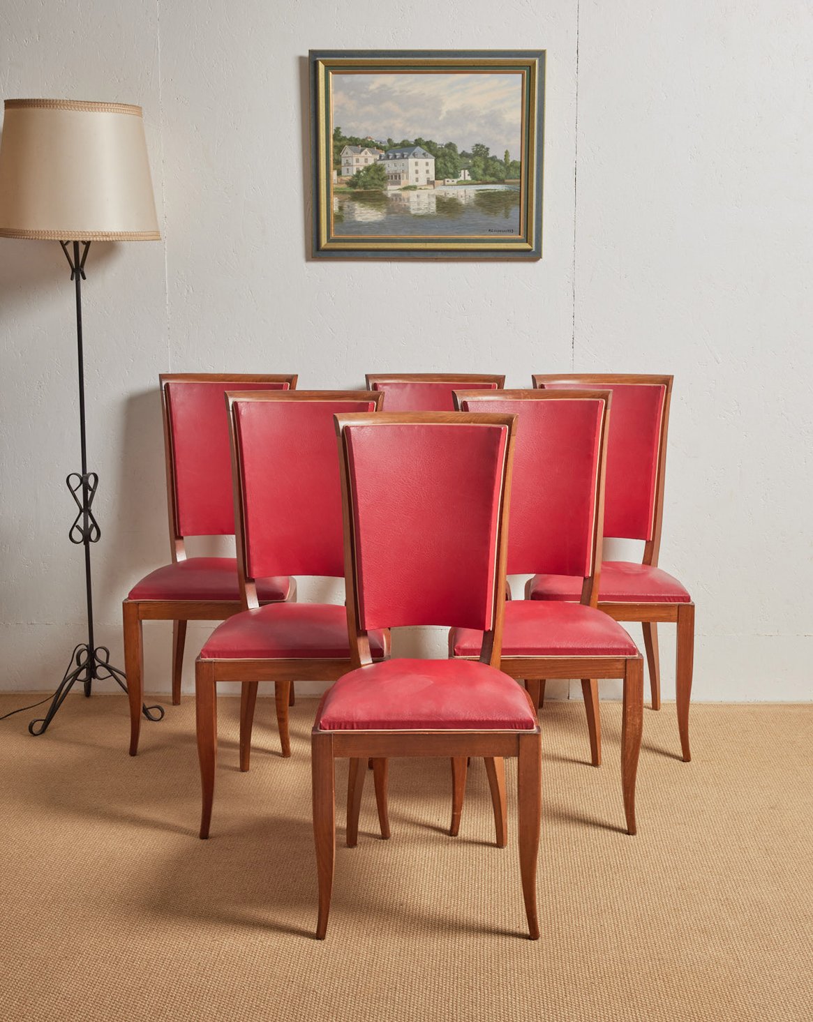 Invitez une touche rétro et colorée avec ce lot de six chaises en skaï rouge sur piétement bois, où la teinte chaleureuse dialogue avec la noblesse du bois. Leur assise en skaï offre un entretien facile tandis que la structure en bois assure stabilité et confort pour les repas quotidiens ou les soirées entre amis. Compactes et bien proportionnées, elles s'intègrent aussi bien autour d'une table de salle à manger que dans une cuisine conviviale, apportant une ambiance accueillante et graphique.