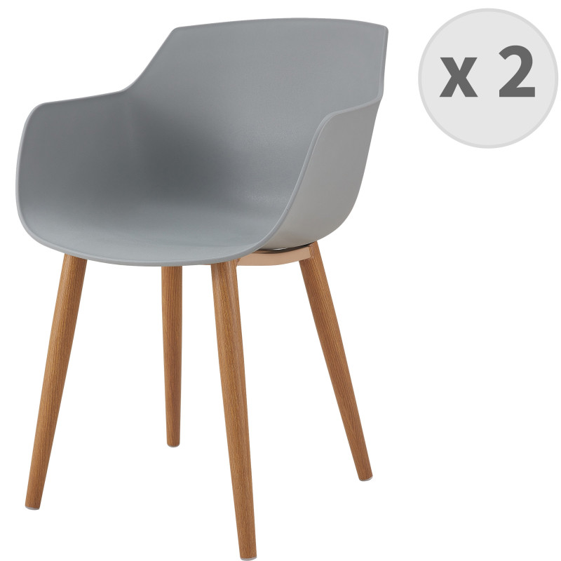 Andrea-chaise scandinave gris pied métal effet bois (x2)