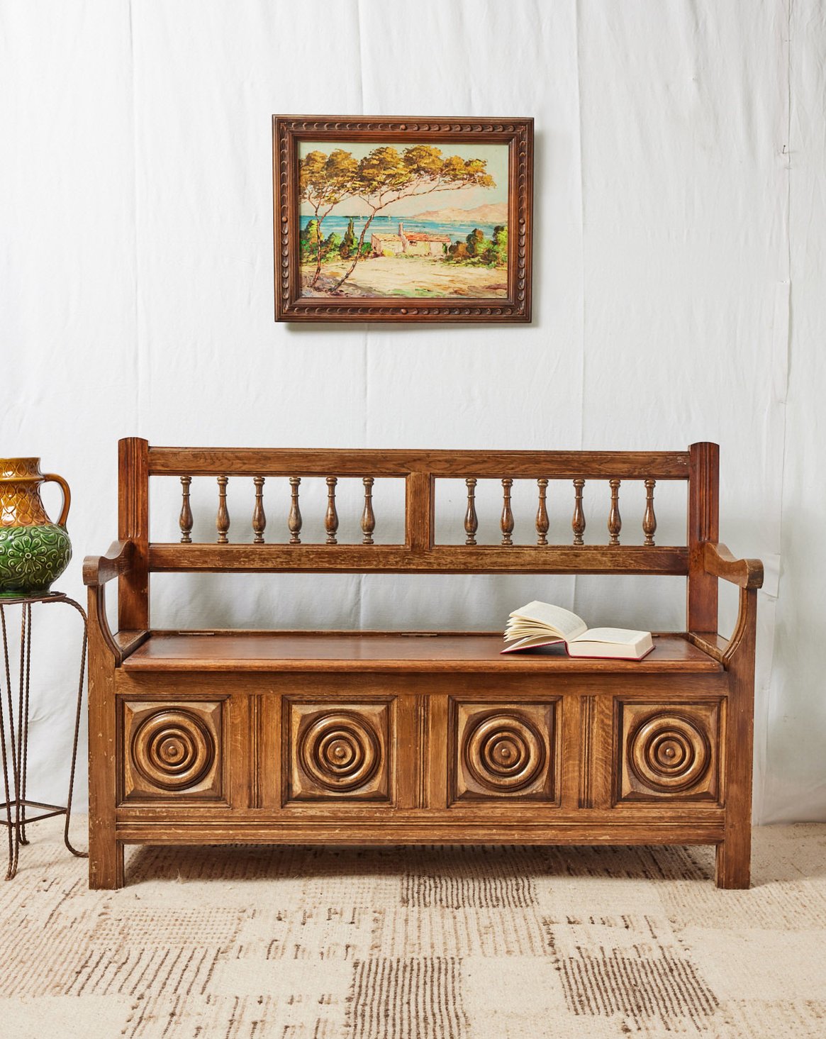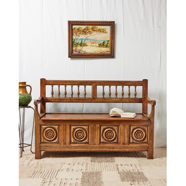 Découvrez ce banc ancien en bois au charme discret, rehaussé d'une belle patine qui raconte son histoire. Son coffre généreux permet de ranger plaids, chaussures ou magazines, tandis que l'assise offre un point d'appui élégant pour une entrée ou le pied d'un lit. Le matériau naturel et les lignes simples apportent une atmosphère chaleureuse et authentique à la pièce. Une pièce à la fois utile et décorative, idéale pour créer une ambiance accueillante.