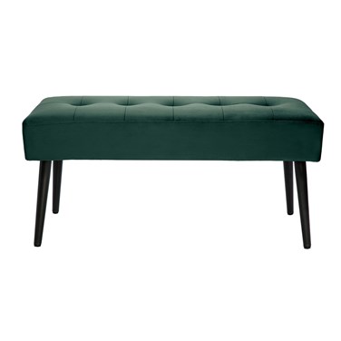 Banc capitonné en tissu velours vert foncé et métal noir l96 cm guesta