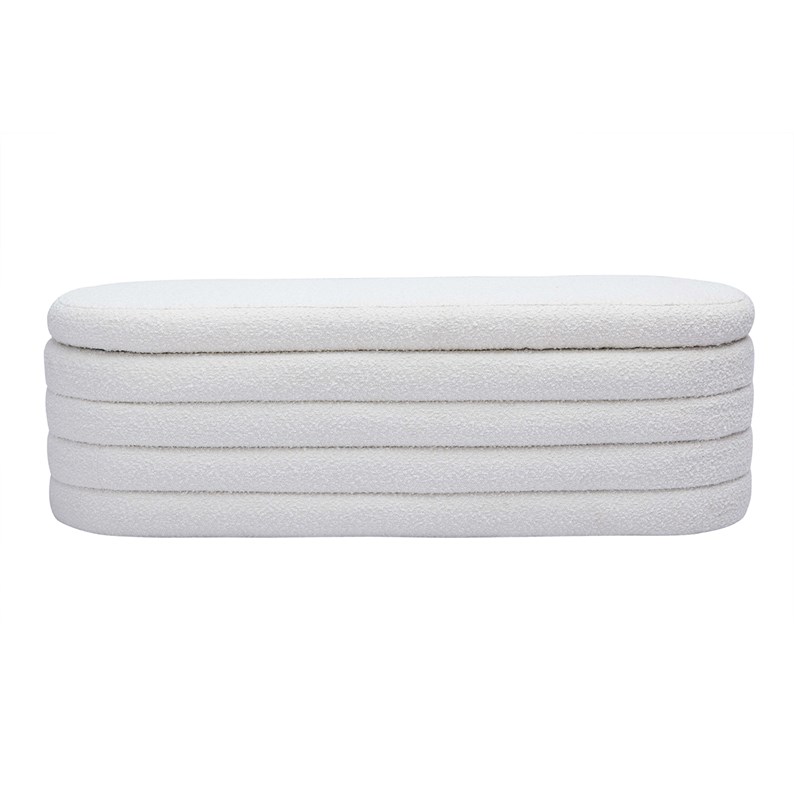 Banc coffre en tissu effet laine bouclée blanc l125 cm navy