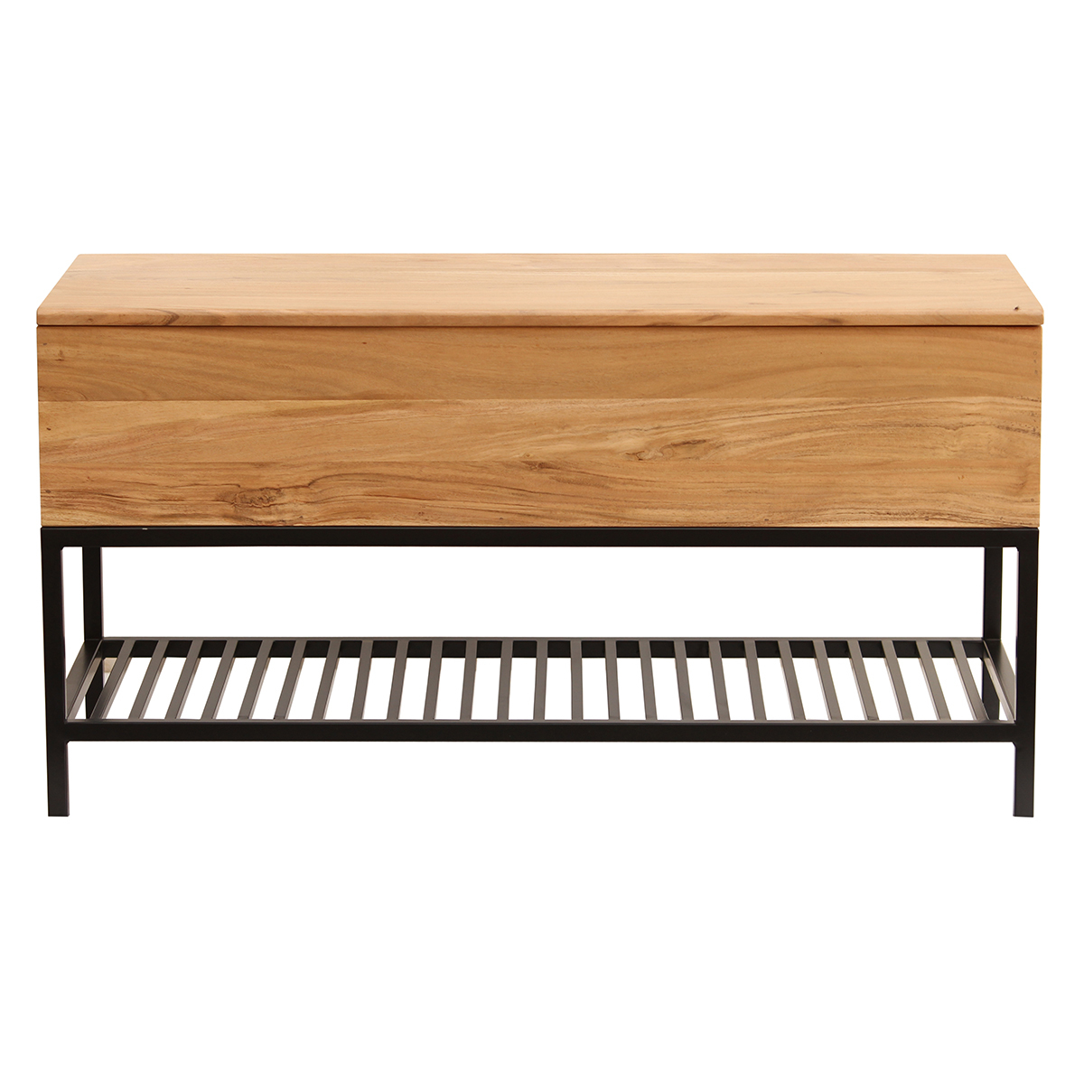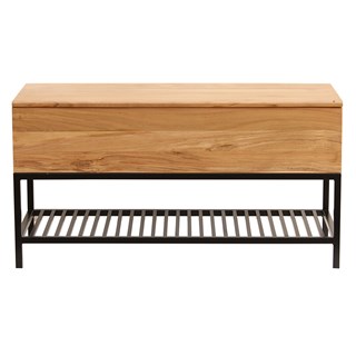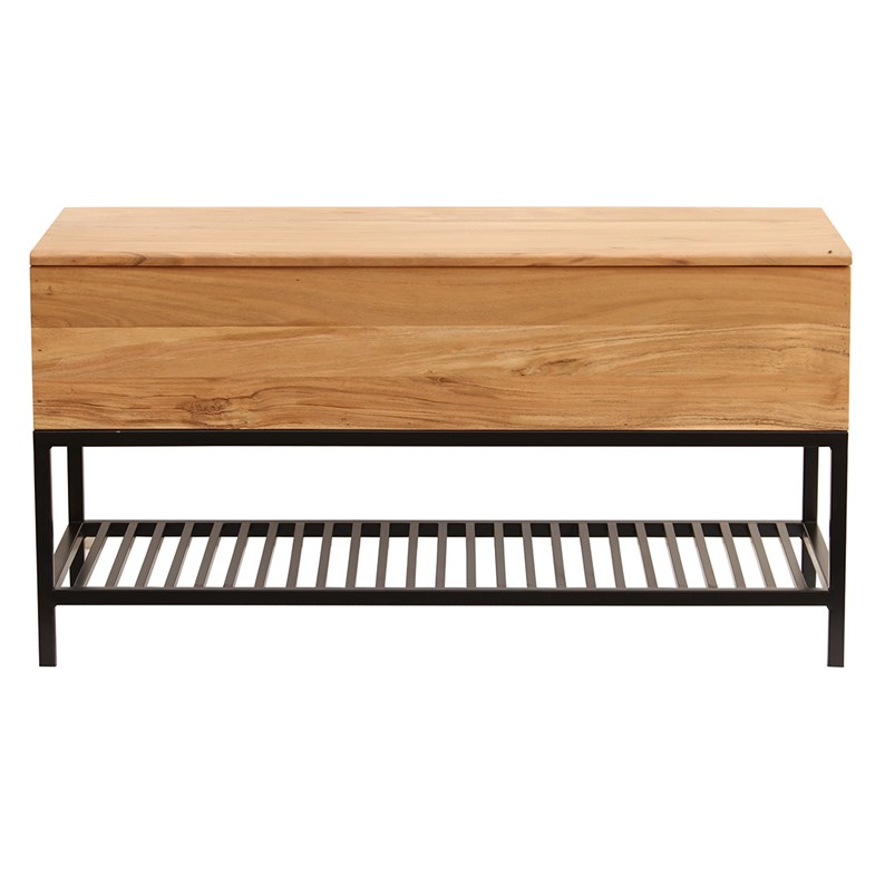 Banc d'entrée avec coffre de rangement en bois massif et métal noir l100 cm sorg