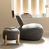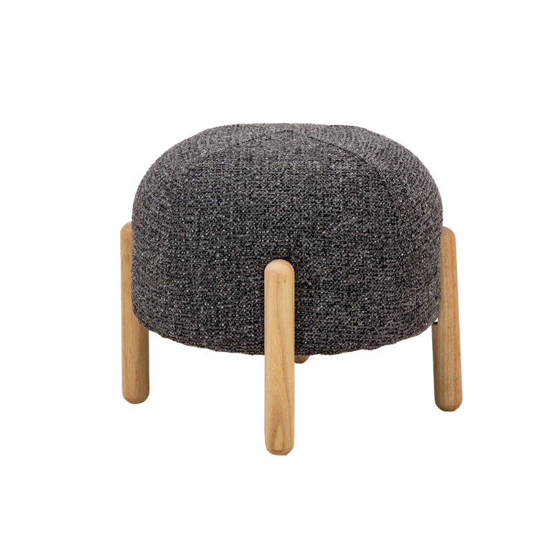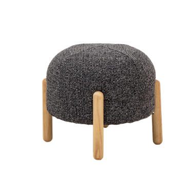Petit tabouret rond en tissu bouclette et pieds bois clair. Pratique et déco. Assise confortable et coffre de rangement intégré. Dimensions : 45x45x37 cm.
