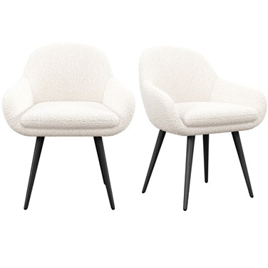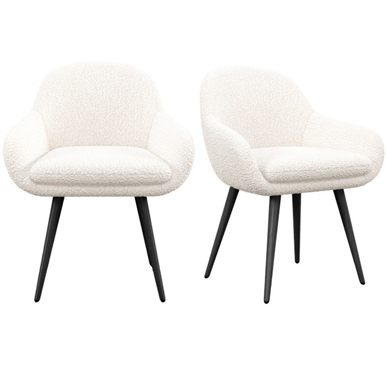 Cancun-chaise en tissu bouclette ecru et pieds métal noir (x2)