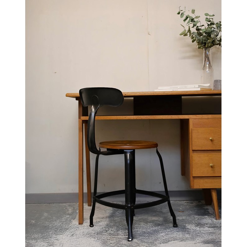 Chaise d'atelier en métal et bois n°890