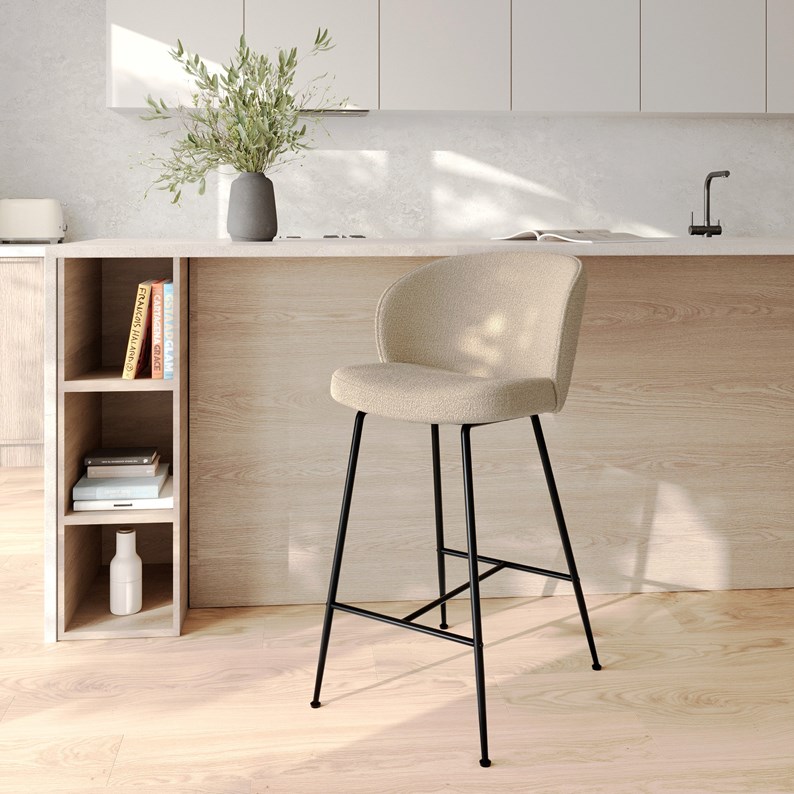 Chaise de bar en tissu bouclé beige 66 cm - groom